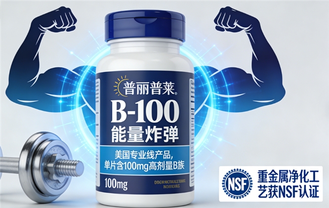 美国专业线产品,单片含100mg高剂量B族。重金属净化工艺获NSF认证,健身增肌人群的“能量炸弹”。