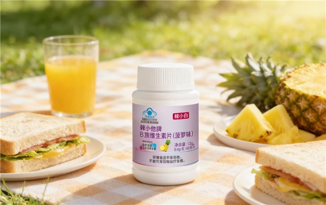 酸甜菠萝风味与透明包衣: 专利包衣层采用天然菠萝果粉调味,完美掩盖B族固有苦味;透明材质确保无人工色素添加,片剂表面天然橙黄色斑点为B族本色显现。